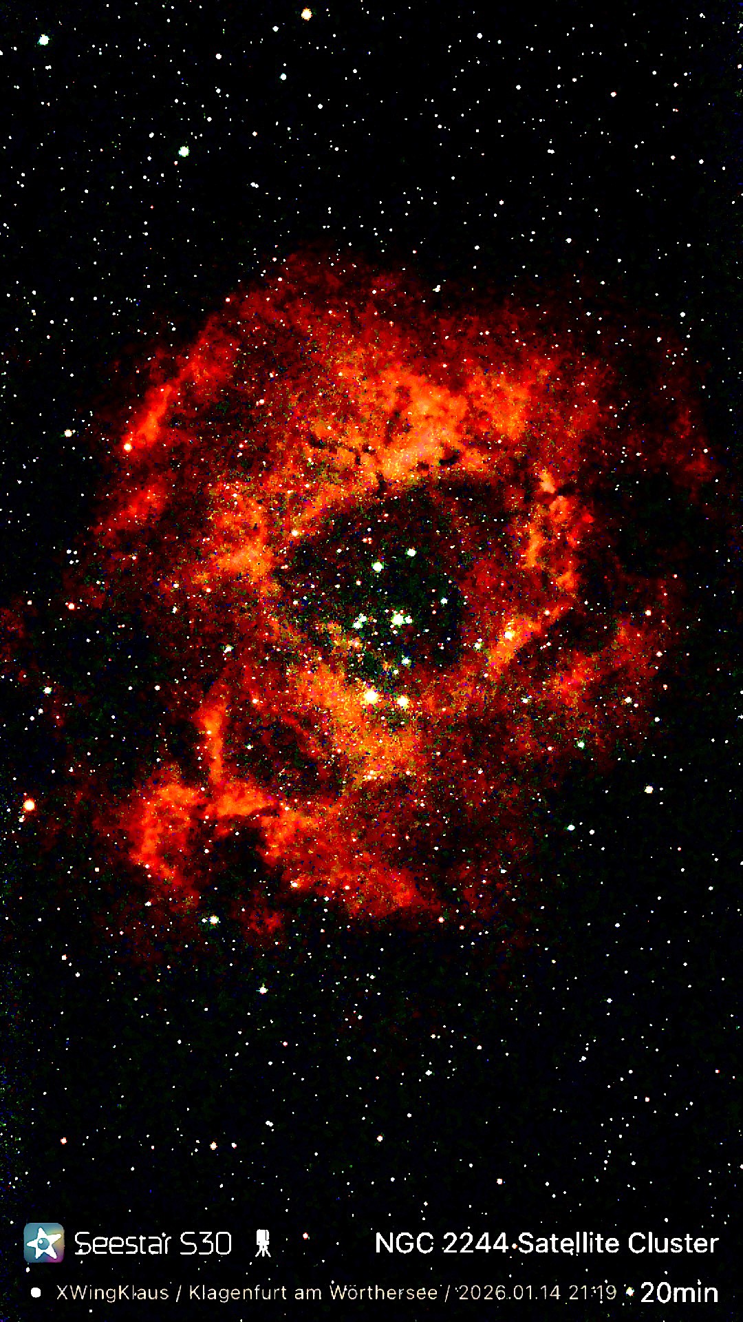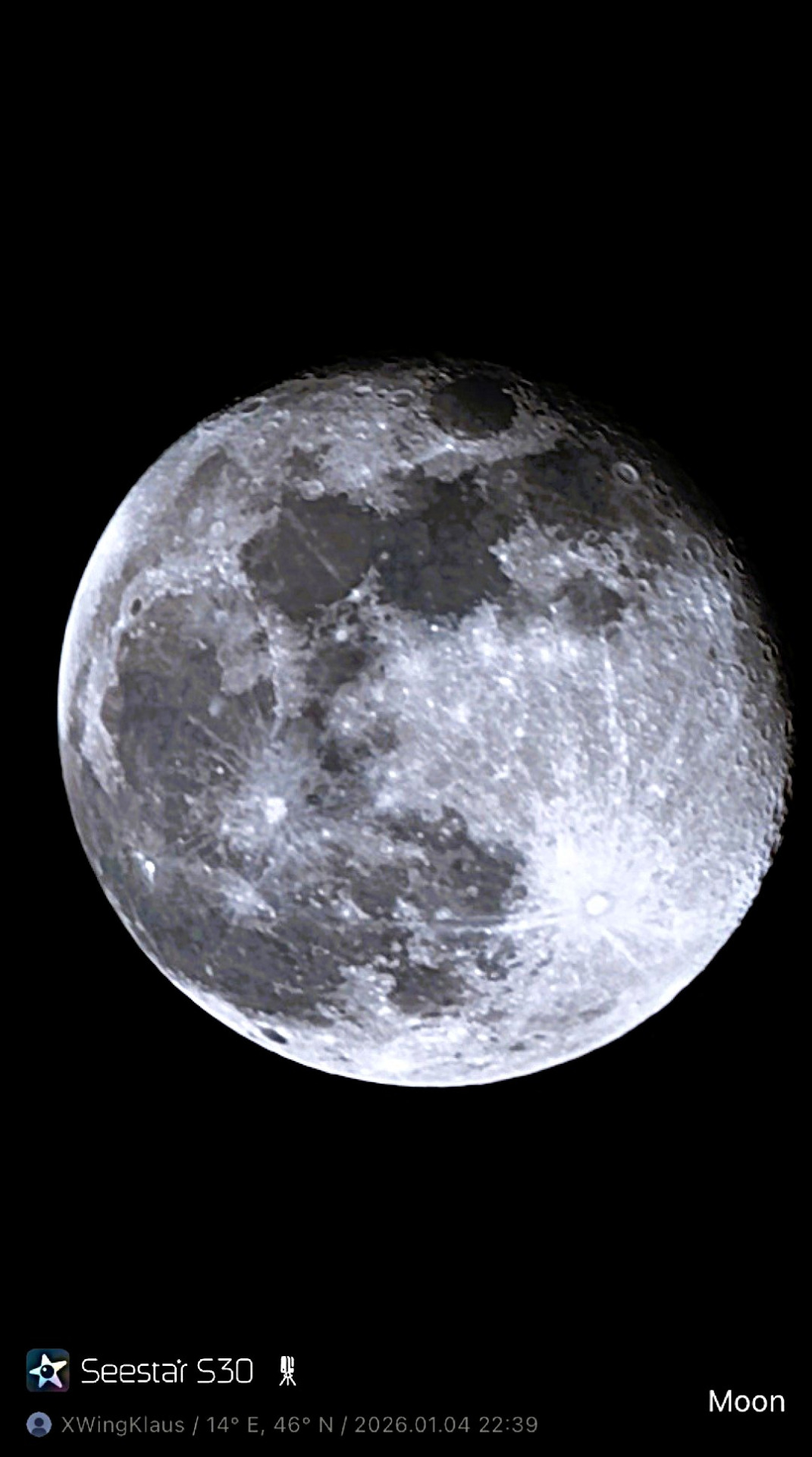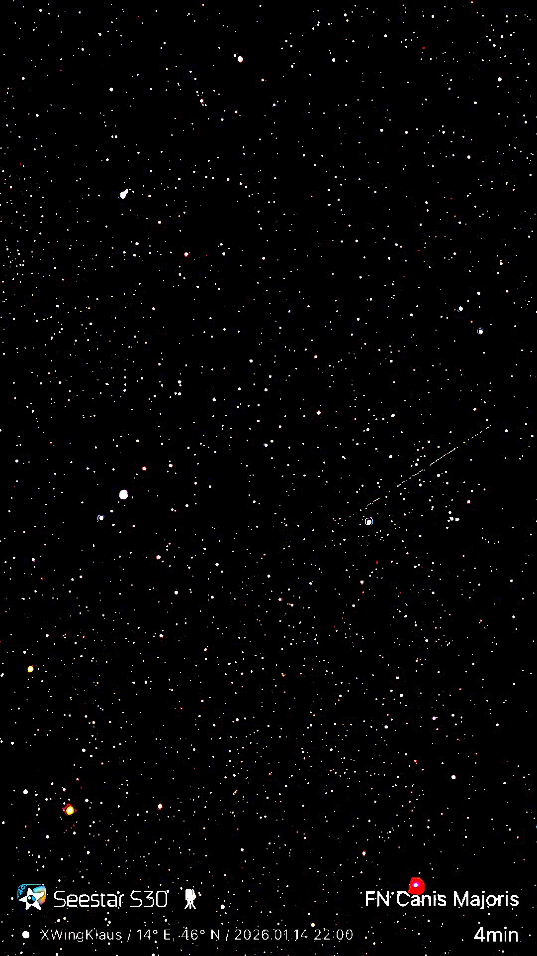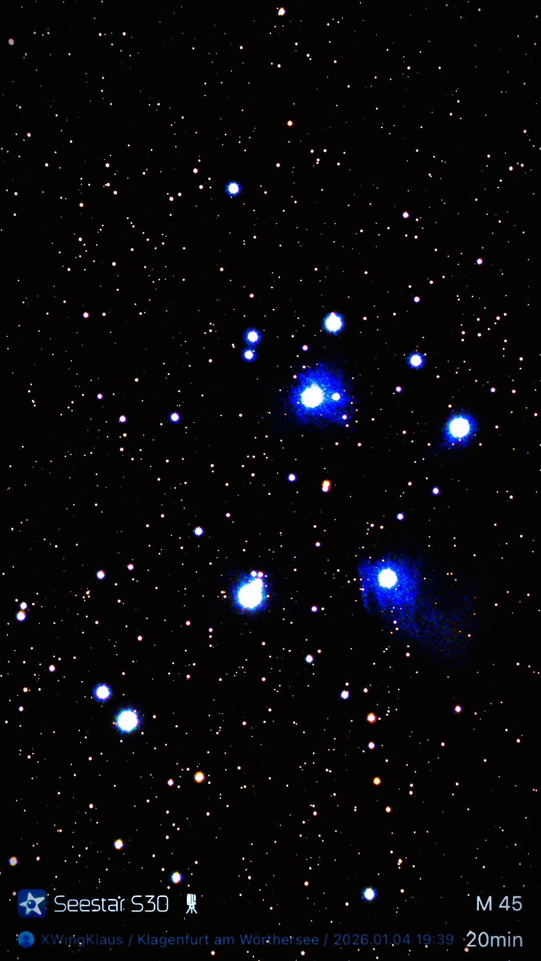 Using the Seestar S30 Electronic Telescope. The time of capture and exposure time are visible in the photos below.