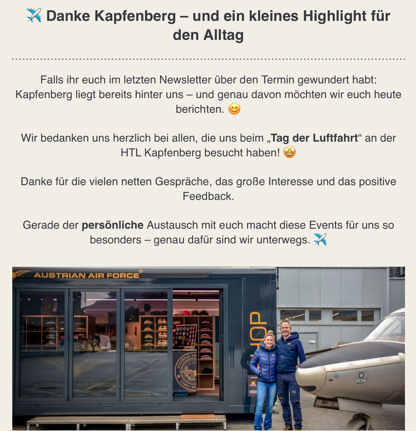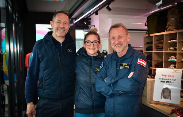 Joint visit to CEOs Stefan and Petra of Austrian Air Force Aeronautical Fashion and brand ambassador Captain Klaus Rainer as part of the Aviation Day of the Aviation HTL Kapfenberg on January 30, 2026.