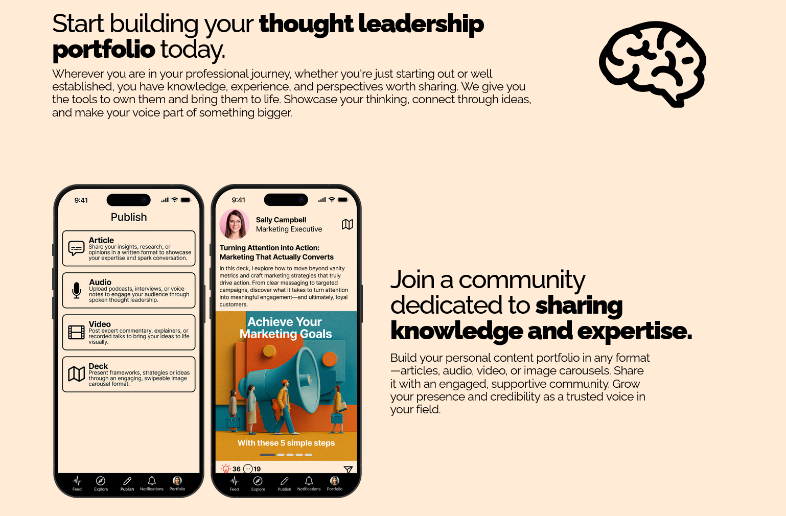 Anyone with knowledge, experience, or insights to share is welcome on INSPO. The platform empowers you to build a thought leadership portfolio around your unique expertise.