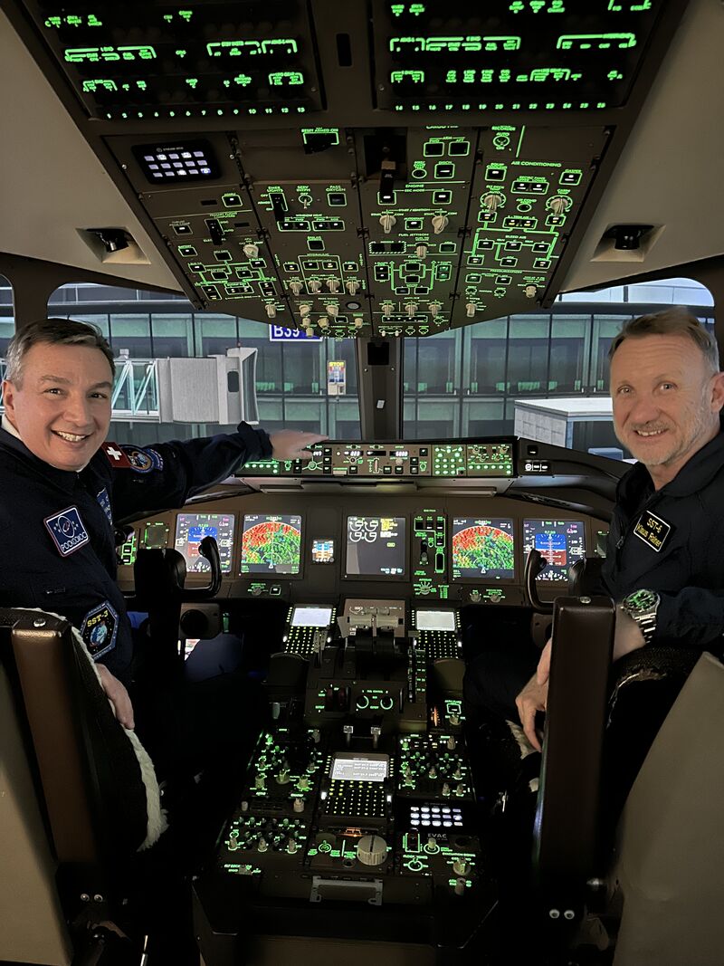 At the Zurich Simulator Center, our cooperation partner, we will be completing several simulator hours together with Boris Otter over the coming years. We will be flying aircraft including the F-18, F-35, Boeing, and Space Simulator. The training objective is the rapid acquisition of information and its effective application. No type rating will be obtained.