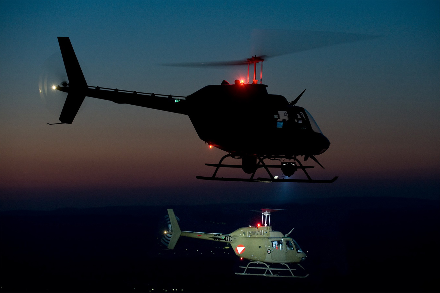 In our EMS air ambulance service, we use night vision goggles for night flight operations. This allows the crew to land in open terrain, not just on hospital helipads, bases, or airports. Landings are possible at any emergency location after careful reconnaissance, provided there is sufficient space. Highways, meadows, remote farms, even forest clearings or landings in high mountains are all possible with these night vision devices.